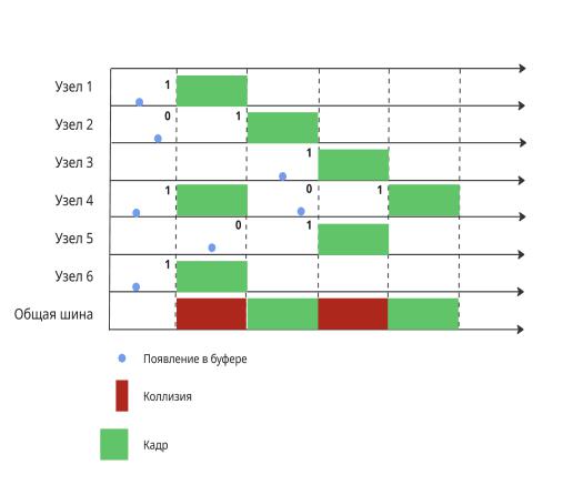 доступ к среде передачи данных в каждом временном слоте на основе их