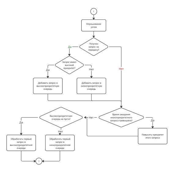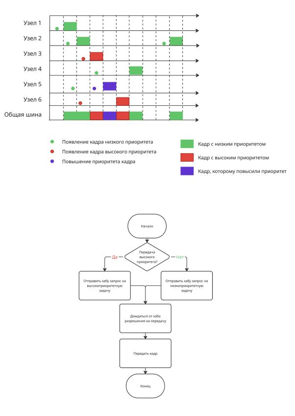 Блок-схема обработки запросов хабом при Demand Priority.