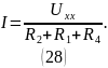 Так как через ЭДС и сопротивления протекает ток источника, то согласно этому, формула для вычисления напряжения холостого хода между узлами 1 и 2 представлена в выражении 27.