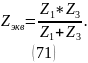 С использованием эквивалентных преобразований производится вычисление ZЭК относительно зажимов представлено в выражении 71.