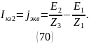 Вычисление тока Iкз2 по второму закону Кирхгофа относительно узла 2 представлено в выражении 69.