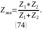 С использованием эквивалентных преобразований производится вычисление ZЭК относительно зажимов представлено в выражении 74.