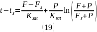С помощью метода разделения переменных это уравнение интегрируется от начальной накопленной инфильтрации Fs в момент времени ts до некоторого значения F в момент t. В результате получается выражение для накопленной инфильтрации при затопленном режиме:
