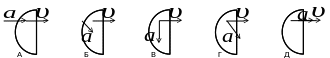 2/ Частица движется по окружности с постоянной по модулю скоростью. Векторы скорости и ускорения: