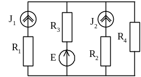 Найти ток а) методом узловых потенциалов; б) методом наложения. |
