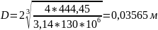 Из формул (10) и (11) получим формулу (12) для расчёта диаметра: