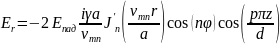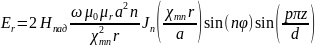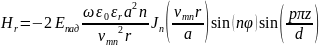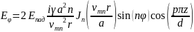 Каждый тип колебаний, возбуждаемый в резонаторе, имеет свою собственную частоту, определяемую типом моды, размерами резонатора и свойствами среды, заполняющей резонатор. Для E-волн резонансные частоты рассчитываются по следующей формуле: