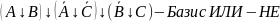 Для перевода логического выражения в базис И-НЕ надо в ДНФ охватить скобками все элементарные конъюнкции, и записать выражение такого же вида, в котором все отрицания остаются при тех же аргументах функции, а все знаки & и + заменяются Штрихом Шеффера |. Если какая-то из элементарных конъюнкций представлена в ДНФ всего одной переменной, то при переходе в базис И-НЕ эта переменная инвертируется