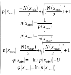 3) решается система уравнений относительно экспонент квазиуровней Ферми с учётом начального приближения