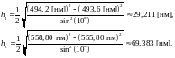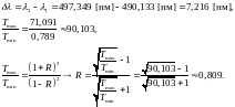 Используя соотношения для углов падения 5º, 10º и 30º вычислим значения толщины обоих светофильтров, получив следующее соотношение. Расчетные данные представим в таблице 3.