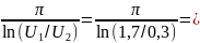 Формула для расчета собственной частоты p1,2 = p1 = p2 по осциллограмме для критического режима: