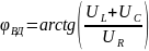 4. Расчетная формула для определения угла сдвига напряжений в RLC цепи