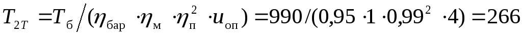 Тбар = Fк Dб / 2000=11000180/2000 = 990 Н·м;