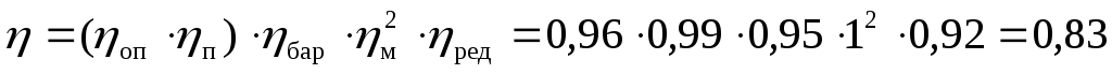 где бар– КПД барабана, бар= 0,95 [2, с.6];