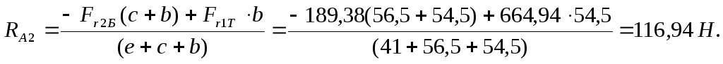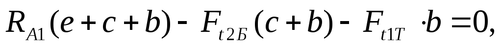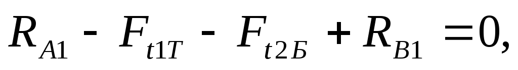 Определим реакции, возникающие в подшипниках от усилий Ft2Б и Ft1т в плоскости ОУX: