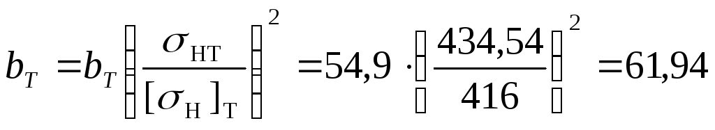 bd = bw / dw1 и от сочетания твердости зубьев шестерни и колеса; для нашего случая bd = 0,916 и KH = 1,07 [2, рис. 8.15]