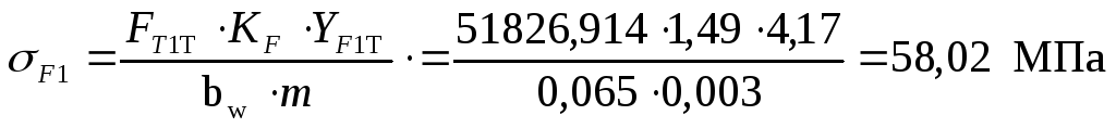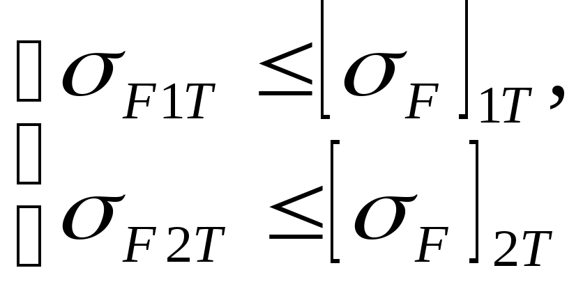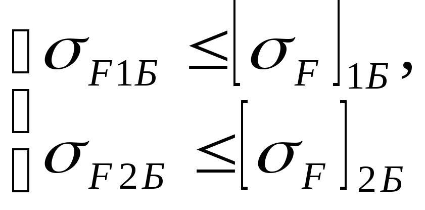 Изгибные напряжения в основании зубьев прямозубых колес определяются по формулам: