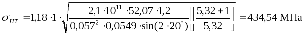 Вычислим расчетное контактное напряжение с учетом коэффициентов