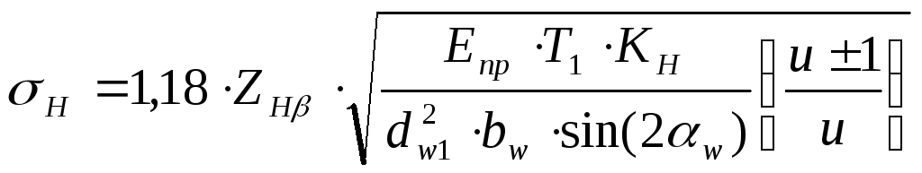 Величины рабочих контактных напряжений одинаковы для шестерни и колеса, поэтому расчет выполняют только для шестерни. Контактное напряжение в зацеплении определяется по формуле: