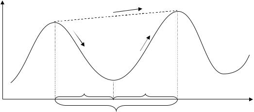 подъема) фазой цикла является пик – высшая точка цикла, в которой, как правило, достигается полная занятость и потенциальный уровень ВВП (рис.