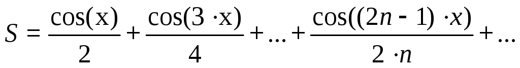 Разработать алгоритм вычисления частичной суммы членов ряда S=cos(x)+cos(2ּx)+cos(3ּx)+…+cos(nּx)+… c точностью ε=10-4 для π/6<x≤π/3 и вывода ее значения.