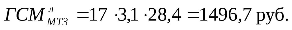 По формуле (11.5) определим затраты на горюче-смазочные материалы: