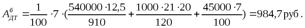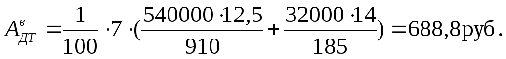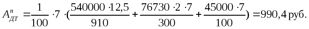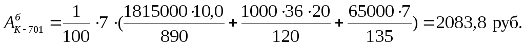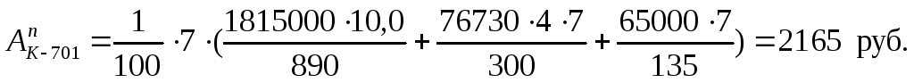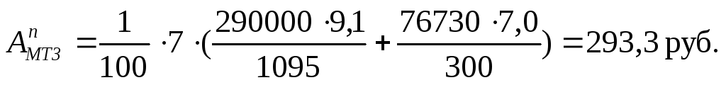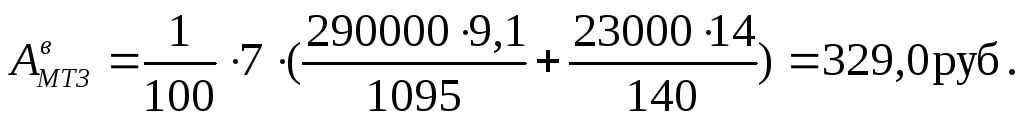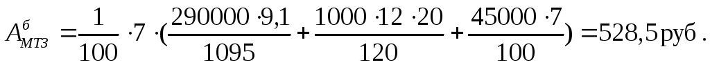 По формуле (11.3) определяем сумму амортизационных отчислений за сменную норму выработки агрегатов МТЗ-80 + ЛДГ-5, ДТ-75М + ЛДГ-10, К-701 + ЛДГ-15.