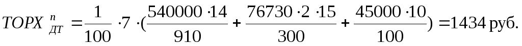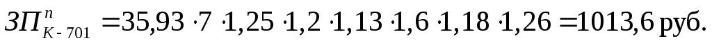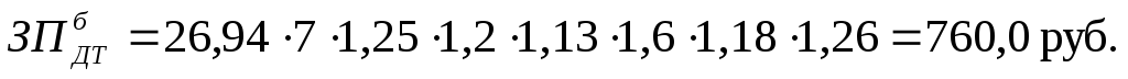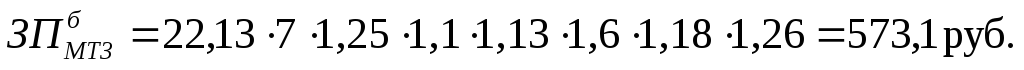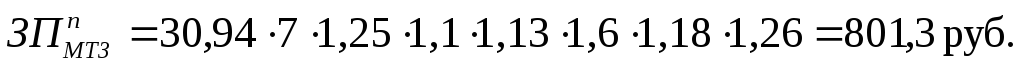 По формуле (11.2) определим сменную заработную плату трактористов-машинистов из расчёта минимального размера оплаты труда (МРОТ) 2300 руб.