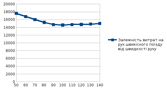 Залежність витрат на рух швидкого поїзду від швидкості руху |