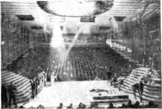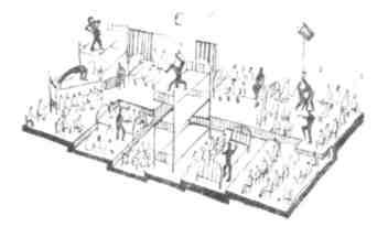В новых Дворцах спорта предусмотрены простые средства трансформации, позволяющие довольно успешно сочетать спортивную и театрально-концертную деятельность. Здания многоцелевого назначения играют заметную роль в культурной жизни разных народов. Но что касается театра, то сооружения подобного характера не могут удовлетворить даже самые основные требования, предъявляемые этим видом искусства. Передвижные зрительные залы, отсутствие надлежащей механизации для перемены декораций и их движения во время действия, весьма примитивное обозначение той или иной формы сцены создают лишь внешние признаки театра, отрывают его от присущей каждому типу сцены архитектуры. Так, например, обозначение занавесами или панелями сцены-коробки еще не означает действительной организации сцены этого типа. Сцена-коробка, как и всякая другая, это комплекс взаимосвязанных между собой элементов техники, архитектуры и пр., а не только формальное разделение сцены и зала портальной плоскостью. Другое дело, когда мы встречаемся со специально построенным театральным зданием, рассчитанным только на театральные постановки, в котором предусмотрена возможность