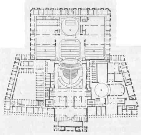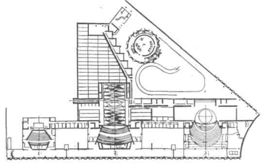 Рис. 191. Большая опера в Варшаве. План. Арх. Б. Пынев-ский. 1965: