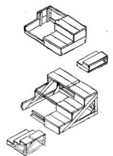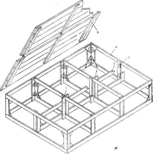 Процесс изготовления павильона начинается с вычерчивания мелом на полу мастерской всех его стенок в натуральную величину «лицом» вниз. В чертеже-шаблоне проводятся линии складов и стыков отдельных стенок, размечаются оконные и дверные проемы и пр.