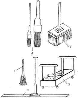 Грунтовку производят остывшим составом, начиная от верхней кромки декорации, быстро, в один прием, равномерно покрывая всю плоскость. Для покрытия больших плоскостей грунтом и красками пользуются особыми декоративными кистями — щетками под названием «дилижанс». Остальные работы производятся плоскими щетинными кистями, насаженными на длинные ручки (рис. 116).