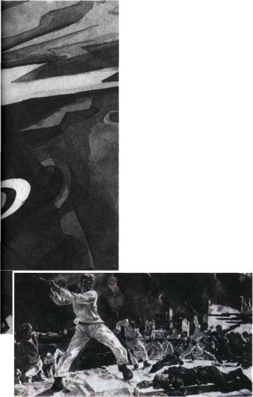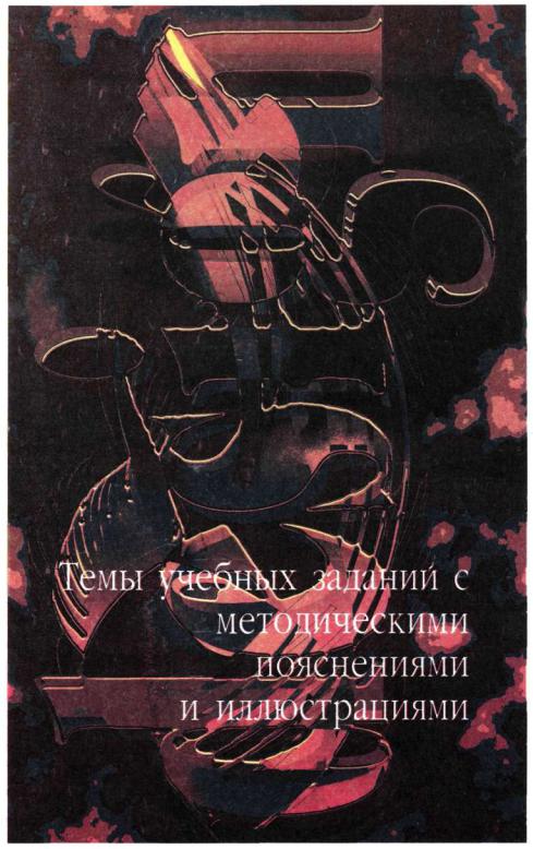 Педагогическая практика знает немало примеров достижения анало гичных методических целей с помощью копирования работ известных мастеров искусства. Однако в нашем задании имеется в виду не прямое копирование. Будущему дизайнеру недостаточно способности точно вос производить художественно-композиционные характеристики произведе ния (хотя, разумеется, ремесленно-художественные способности ему так же необходимы, как и любому другому художнику). Поэтому основной акцент в работе делается на тщательный содержательный анализ худо жественного произведения, детальное рассмотрение того, как и на чем строится основная конфликтная ситуация, ее главный идейный стержень, и на то, как и с помощью каких средств это нашло отражение в художе ственно-образном построении произведения,
