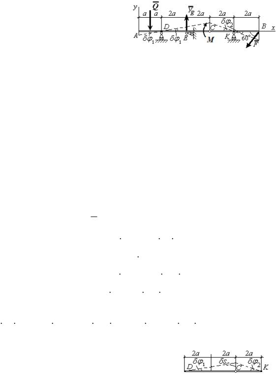 шарнир А механизма действует сила Q = 30 Н, а на шарнир В – сила F = 40 Н. |