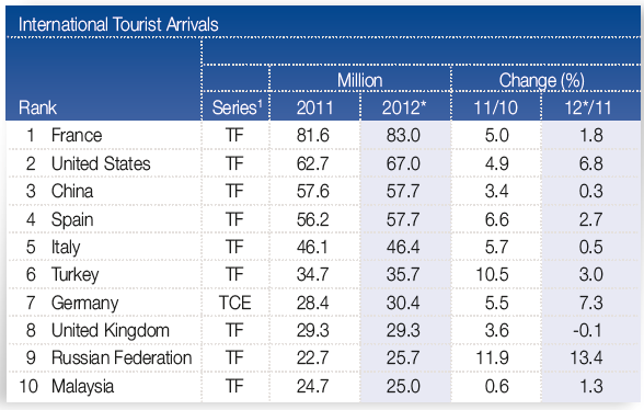 Статистика международных туристских прибытий