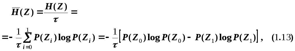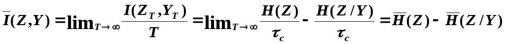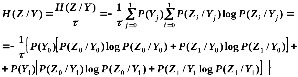 где H(Z) – энтропия выходного сигнала или энтропия выхода канала, рассматриваемого как эргодический источник.