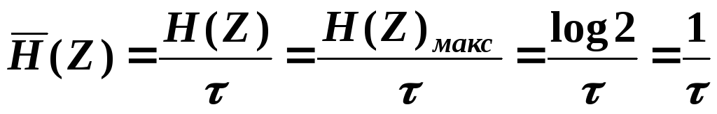 Скорость передачи информации будет определяться по формуле (1.2), в которой энтропия источника равновероятных сообщений будет максимальной:
