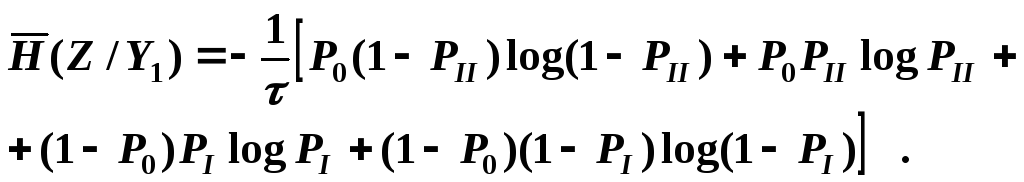 Как отмечалось выше, для достижения максимальной скорости передачи информации необходимо в кодирующем устройстве обеспечить такое формирование символов кода, при котором Р0 = Р0опт. Значение Р0опт можно вычислить из выражений (1.12), приняв во внимание PI = PII = Pош и P(z0) = P(z1). Путем вычитания из (1.12) находим