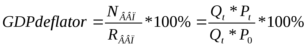 Дефлятор ВВП (GDP deflator) рассчитывается как изменение в цене на группы одинаковых товаров.