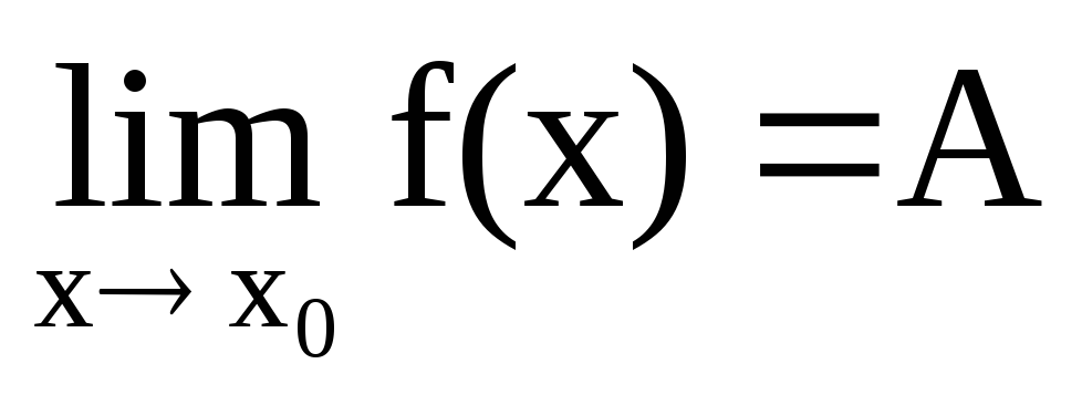 Число А называется пределом функции y = f(x) при х, стремящемся к х0 (или в точке х0), если для любого, даже сколь угодно малого положительного числа, найдется такое положительное число(зависящее от, т.е.=()), что для всех хх0таких, что |х - х0| <, верно неравенство: | f(x) - А| <.