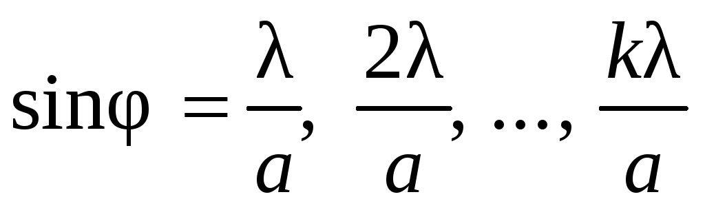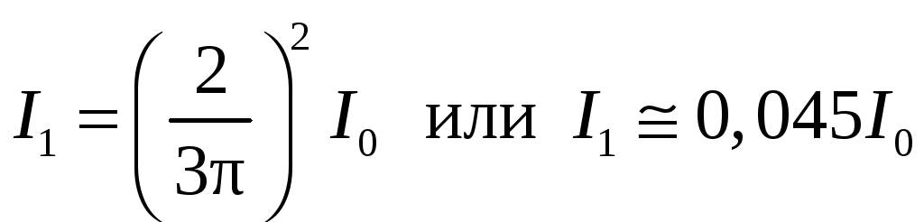 где I0 – интенсивность света в середине дифракционной картины (в направлении = 0); I - интенсивность света в точке, положение которой определяется данным значением угла . При значении угла дифракции , удовлетворяющему условию