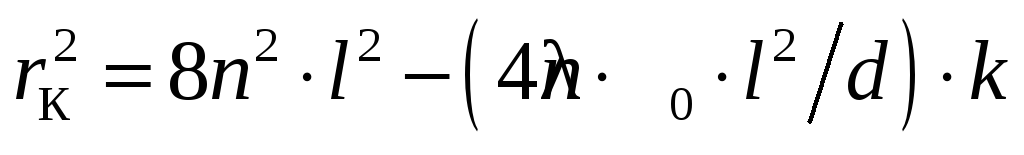 Полосы интерференционной картины на экране имеют вид колец. Радиусы rк тёмных колец определяются условием интерференционных минимумов: