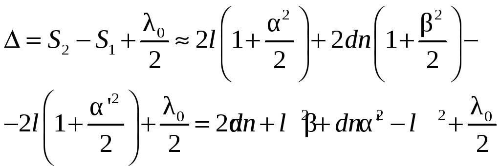 Поэтому оптическая разность хода рассматриваемых лучей равна: