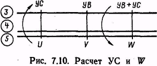 4) при угле ветра, равном нулю, W=V+U, а при угле ветра, равном 180°, W=V—U; для других значений углов ветра путевая скорость отсчитывается по НЛ-10М против суммы УВ+УС, при нахождении которой к УВ прибавляется всегда абсолютная величина УС независимо от его знака;