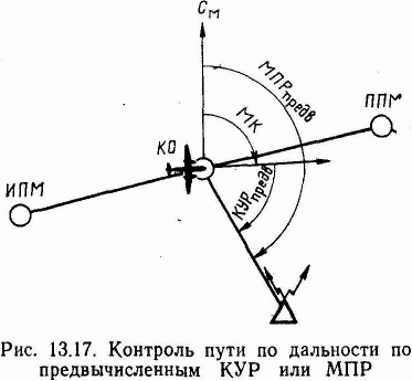 Контроль пути по дальности заключается в определении пройденного от КО или оставшегося до заданного пункта расстояния. С помощью боковых радиостанций эта задача решается следующими способами: