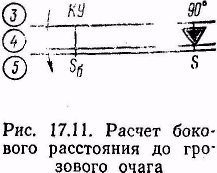 2. Определить удаление зоны грозы от самолета в направлении линии полета и в направлении, перпендикулярном к этой линии. Расстояние в направлении полета определяется по меткам дальности, а боковое расстояние рассчитывается по формуле: Sδ=Ssin КУ, которая решается на НЛ-10М (рис. 17,11). Маневр по обходу зон грозы и ливневых осадков, видимых на индикаторе производится на заданной высоте и на удалении от