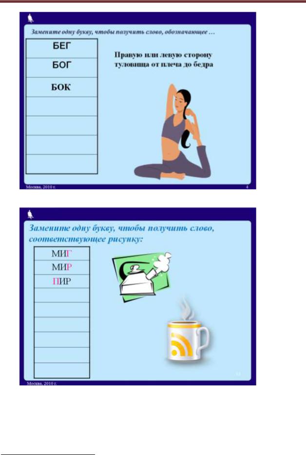 3. Ученикам предлагаются только текстовые подсказки по преобразованию слов. Рассмотрим один из возможных вариантов подсказок для самой сложной цепочки преобразований «МУХА – СЛОН»13:
