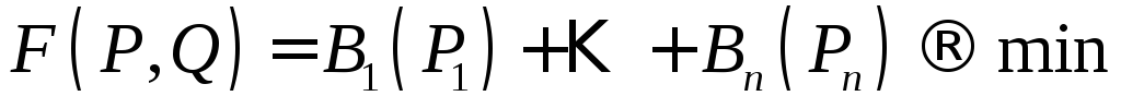 Оптимизация режима может проводиться отдельно для активных и реактивных мощностей как и было рассмотрено. Однако точное решение можно получить, одновременно оптимизируя P и Q. Дополнительная экономия получается при этом за счет более точного учета режима. В качестве целевой функции в этой задаче принимаются расходы топлива на тепловых станциях