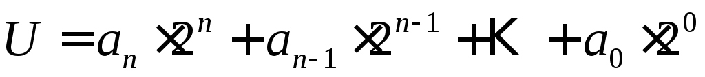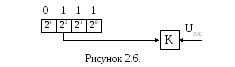 С помощью компаратора K через устройство управления УУ на триггерах поочередно, начиная со старшего разряда 2n выставляется 1. Если при этом UOC > UBX, то 1 сбрасывается. В противном случае – сохраняется. Например: